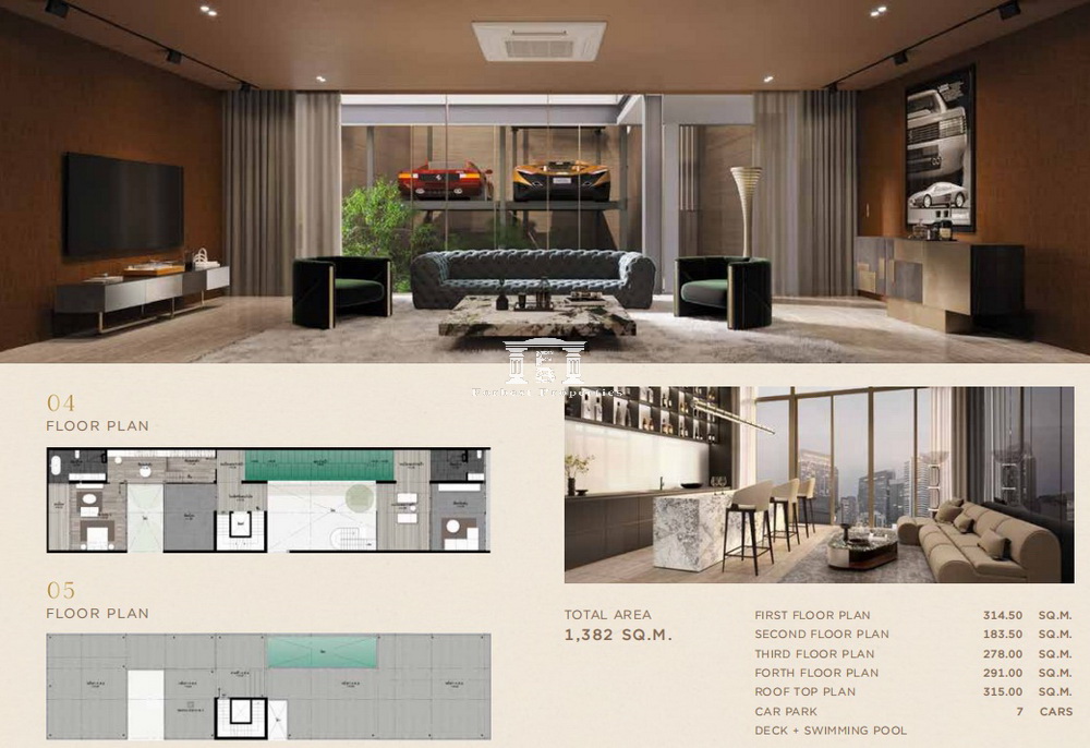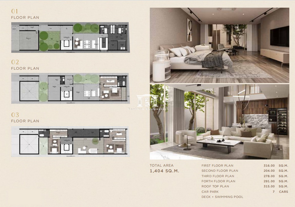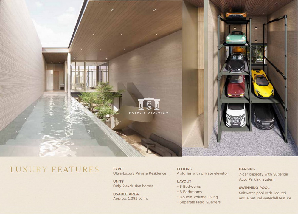 5 ห้องนอน 6 ห้องน้ำ จอดรถ 7 คัน ห้องนั่งเล่น, ห้องทานข้าว, ห้องแม่บ้าน 2 ห้อง + ห้องน้ำ